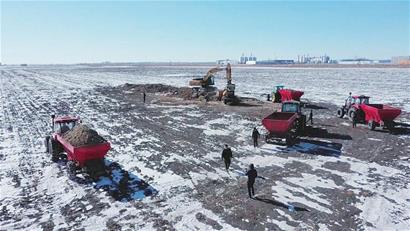 為加大土壤培肥力度,提升土壤有機質(zhì)含量,五大連池市農(nóng)業(yè)農(nóng)村局超前謀劃、及早實施。去年入冬后,組織實施企業(yè)備足有機肥,市農(nóng)業(yè)技術推廣中心采集有機肥樣本,送至有資質(zhì)化驗單位進行質(zhì)量檢測,待檢測合格后,實施企業(yè)開始拋灑作業(yè),確保拋灑不重不漏,高質(zhì)量完成,全程由第三方監(jiān)理公司監(jiān)督實施。全市6萬畝有機肥拋灑任務,按照每畝1.5立方米的數(shù)量進行有機肥均勻拋灑,預計3月末全部完成。