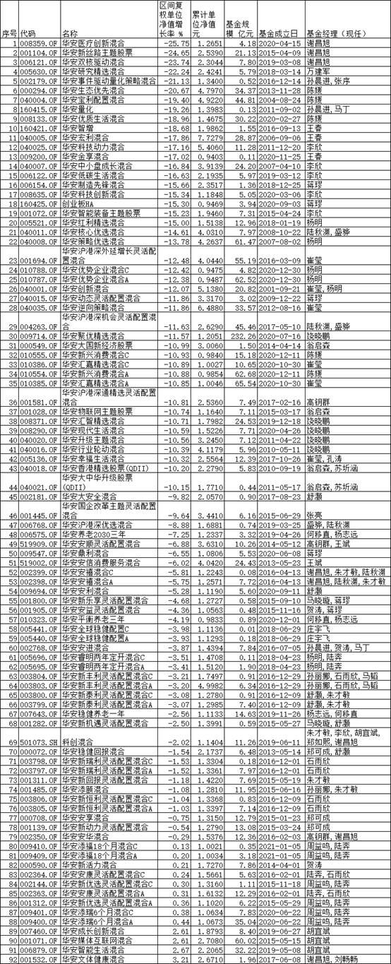 其中,基金經理謝昌旭所管理的3只基金墊底,華安醫(yī)療創(chuàng)新混合(008359)、華安新絲路主題股票(001104)、華安雙核驅動混合(006121)節(jié)后分別虧損25.75%、24.65%、23.74%。