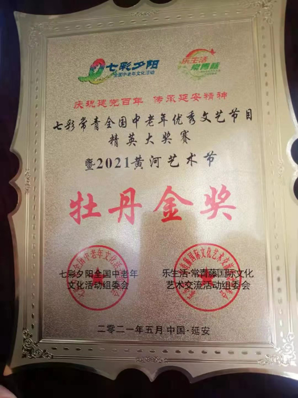 5月15日,塔河森林之聲合唱團應邀參加了全國老齡委在陜西延安舉辦的“慶祝建黨百年·傳承延安精神”全國中老年優(yōu)秀文藝節(jié)目精英大獎賽暨2021年黃河藝術(shù)節(jié),并榮獲牡丹金獎(最高獎項)和優(yōu)秀組織獎。