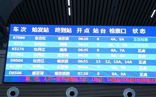 據(jù)介紹,該列車6時(shí)35分從牡丹江站出發(fā),途經(jīng)哈爾濱東、大慶、齊齊哈爾、加格達(dá)奇等共21個(gè)車站,總用時(shí)25小時(shí)23分。從漠河返回牡丹江的發(fā)車時(shí)間是18時(shí)47分,次日20時(shí)03分到達(dá)牡丹江。