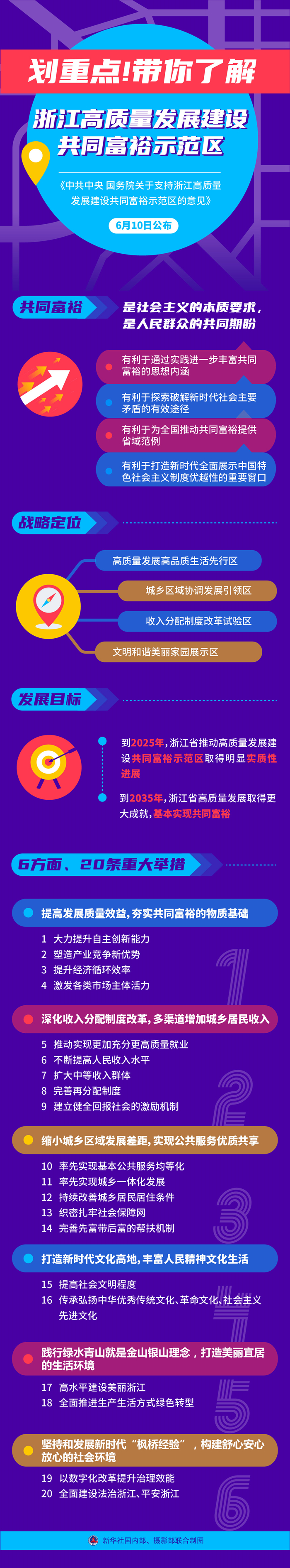 《中共中央 國(guó)務(wù)院關(guān)于支持浙江高質(zhì)量發(fā)展建設(shè)共同富裕示范區(qū)的意見》10日發(fā)布。共同富裕示范區(qū)有哪些亮點(diǎn)?提出了哪些重大任務(wù)?如何讓共同富??吹靡?/span>、摸得著、真實(shí)可感?打開這張圖,帶你了解浙江高質(zhì)量發(fā)展建設(shè)共同富裕示范區(qū)。(新華社記者謝?,?安蓓 制圖 陳為)