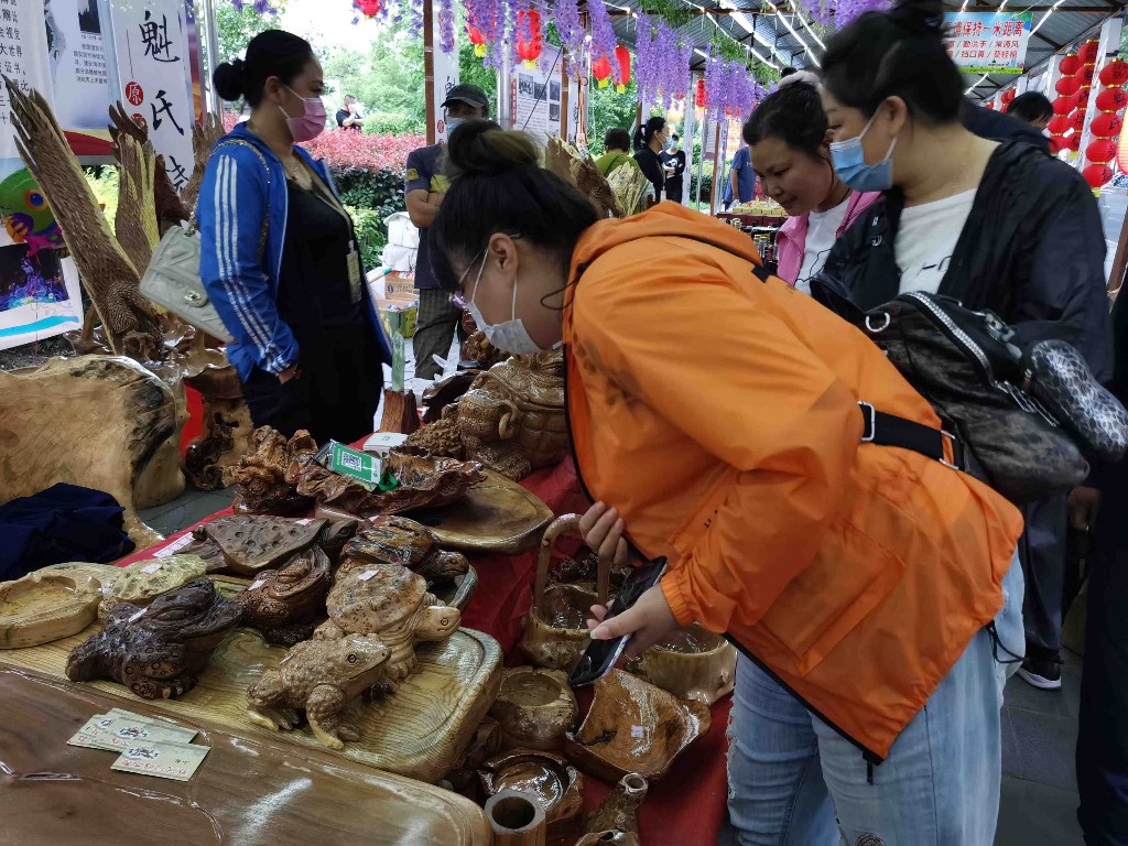 記者在現(xiàn)場看到,牡丹江北山公園的廣場上游人如織,許多市民爭先在網(wǎng)紅月亮秋千、心形燈廊下合影留念。用手機挨個展柜拍照,記錄下牡丹江非物質(zhì)文化遺產(chǎn)。