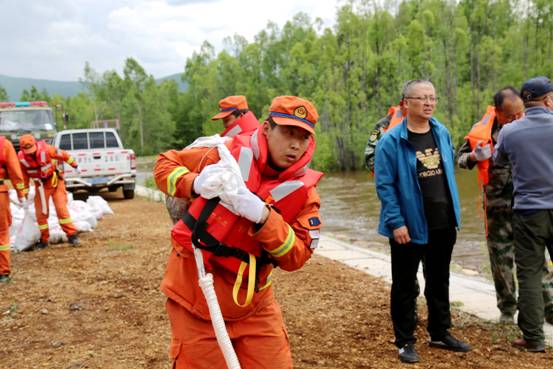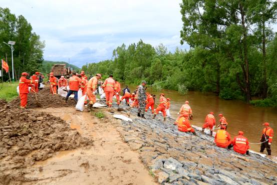 在呼中區(qū)抗洪搶險一線,廣大干部職工正全力以赴奮戰(zhàn)在搶險救災工作中。