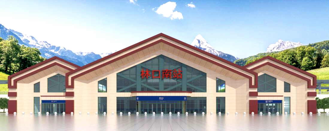 林口南站建筑面積2998.19平方米,可容納800旅客候車。設2條正線,2條到發(fā)線,站房外觀設計如同“林中木屋”,融入林口縣特有的“山水神秀”文化底蘊,給人以厚重堅實之感,并將英雄之城的紅色文化融入其中,象征城市精神如山巒屹立。兩側(cè)較小體塊烘托中部門式造型,窗格構(gòu)件相互交織,如森林霧凇,體現(xiàn)寒冷地區(qū)建筑特質(zhì),具有雪原建筑意向。車站穩(wěn)重大氣、簡潔壯麗,通過現(xiàn)代建筑語言詮釋了站房的人文之靈,彰顯現(xiàn)代交通建筑特征。