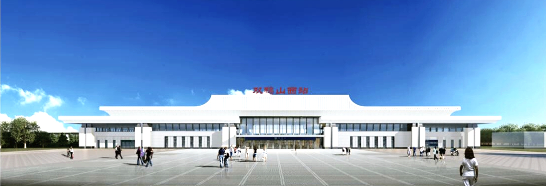 雙鴨山西站建筑面積9997.9平方米,設2條正線,3條到發(fā)線。以“農(nóng)林盛地,昂揚煤城,融匯文脈,合于自然”為設計理念。建筑形體通過極強的橫向?qū)哟危尸F(xiàn)向中心聚集的趨勢,中心高兩側(cè)低類似于山脈的建筑天際線與橫向線條結(jié)合給人以綿延不絕的感覺,寓意城市文化及歷史如山如水般源遠流長。建筑整體造型著重體現(xiàn)雙鴨山市的煤城特色和豐富的農(nóng)林資源,其煤炭相關(guān)產(chǎn)業(yè)一直作為城市建設發(fā)展的重要支柱,建筑主立面采用四根厚重有力的支撐柱,以表現(xiàn)這一理念,同時深入挖掘并體現(xiàn)雙鴨山市特有的文脈及自然特色。