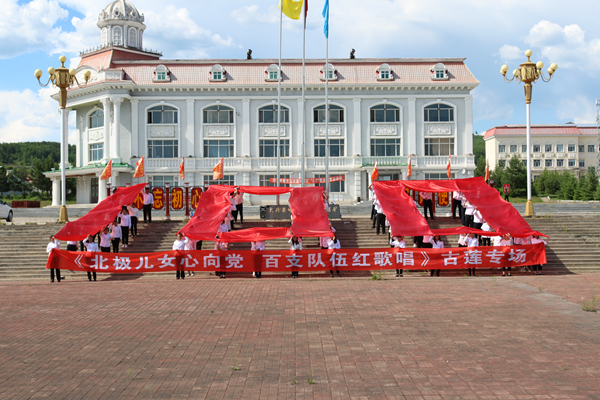開展“高歌頌黨恩 永遠(yuǎn)跟黨走”唱紅歌活動(dòng)。在生產(chǎn)一線、機(jī)關(guān)科室的400多名黨員干部、職工群眾用百米長幅歌頌黨、感謝黨,齊聲高唱《沒有共產(chǎn)黨就沒有新中國》《歌唱祖國》,激情嘹亮的歌聲唱出了對中國共產(chǎn)黨的熱愛和禮贊。全體隊(duì)員還用黨旗和紅綢擺出了100的造型,以特殊的方式向建黨100周年獻(xiàn)禮,充分展現(xiàn)了新時(shí)代林區(qū)礦山人愛黨愛國的精神風(fēng)貌。
