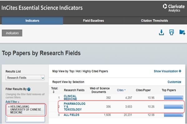 黑龍江中醫(yī)藥大學(xué)藥理學(xué)與毒理學(xué)學(xué)科首次進(jìn)入ESI全球排名前列