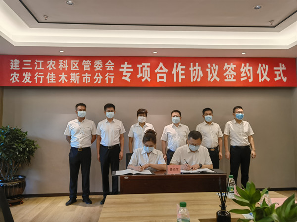 黑龍江經(jīng)濟網(wǎng)訊(郭明儒 王鐵鑫)8月4日,農發(fā)行佳木斯市分行與黑龍江建三江國家農業(yè)科技園區(qū)管理委員會(以下簡稱建三江農科區(qū)管委會)簽署專項合作協(xié)議。農發(fā)行佳木斯市分行黨委書記、行長于智源,黨委委員、副行長張洪昌,建三江農科區(qū)管委會黨工委副書記、管委會主任牟秀玲,管委會領導衣志輝、李慶飚、李彩麗等出席簽約儀式。