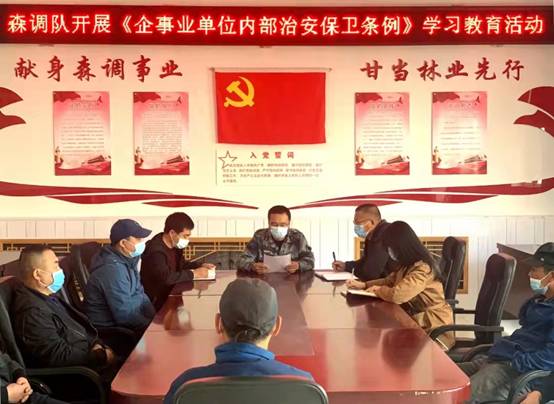 活動中,森林調(diào)查設(shè)計大隊首先成立了安全檢查工作組,明確檢查范圍和內(nèi)容,并由主管安全保衛(wèi)負責人領(lǐng)學了《企事業(yè)單位內(nèi)部治安保衛(wèi)條例》,要求全隊干部職工進一步提高政治站位,高度重視安全工作,嚴格落實安全責任制,認真執(zhí)行值班值守制度,及時做好安全信息登記和對上報告工作,繼續(xù)加強對進出單位人員的疫情監(jiān)控,著力保障企業(yè)內(nèi)部穩(wěn)定。