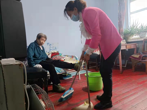 2015年,馮玉新在參加一次志愿服務(wù)活動(dòng)中得知,綠水林場(chǎng)退休臺(tái)屬老干部何立文,老伴去世,兒女常年在外地工作,老人生活不能自理。馮玉新非常惦記老人家,便主動(dòng)留下了老人的電話號(hào)碼,并告知老人無論有任何困難都可以隨時(shí)打電話找她幫忙。就這樣,在幾年的時(shí)間里,只要何立文老人有事情找她幫忙,她都會(huì)爭(zhēng)取第一時(shí)間趕到,幫助老人解決問題。平日里,老人家里缺東少西,她就利用業(yè)余時(shí)間幫著買回去,每逢節(jié)日,她還會(huì)帶著慰問品去看望老人,幫助老人打掃衛(wèi)生,陪老人嘮家常等。