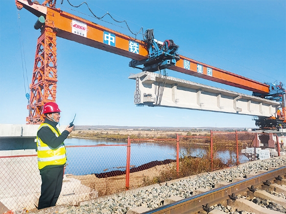 據介紹,前不久北黑鐵路升級改造工程新建24座鐵路橋中的另一座孫吳段大河口中橋架梁已經完成。橋梁位于孫吳縣境內,橋長112.73米,孔跨布置為3×32米,下部結構和T梁預制施工由中鐵十局完成,梁體架設由中鐵十六局集團第五工程有限公司負責完成。