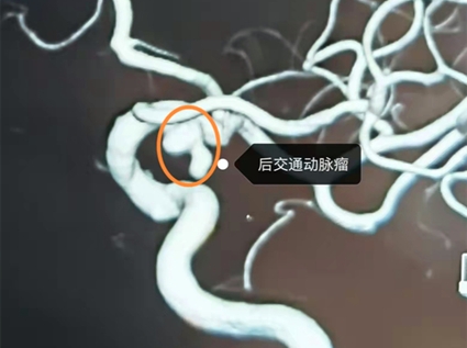 據(jù)省醫(yī)院神經(jīng)外一科孫國(guó)章副主任介紹,張大娘是一位聾啞人,今年69歲,在臨近中秋節(jié)的時(shí)候突然出現(xiàn)不明原因的輕微頭痛,當(dāng)時(shí)家屬并未太過在意,但是三四天之后,張大娘就出現(xiàn)了右側(cè)眼睛睜不開的癥狀,家人這才領(lǐng)著張大娘前往黑龍江省醫(yī)院就診。張大娘入院時(shí),已經(jīng)有頭痛、眼瞼上提障礙等表現(xiàn),很有可能是后交通動(dòng)脈瘤導(dǎo)致,隨即給予張大娘完善了頭部CT平掃及CTA血管檢查。果然,頭部CTA檢查明確顯示右側(cè)頸內(nèi)動(dòng)脈-后交通段有動(dòng)脈瘤樣異常凸起,動(dòng)脈瘤導(dǎo)致相鄰的動(dòng)眼神經(jīng)受壓,引發(fā)動(dòng)眼神經(jīng)麻痹,才讓張大娘出現(xiàn)了眼睛不能睜開的癥狀。