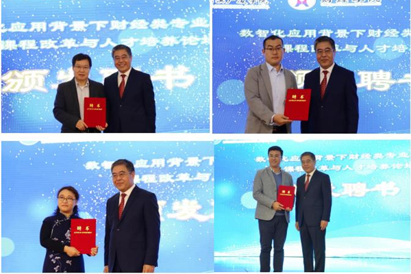 陳西峰為山東財(cái)經(jīng)大學(xué)會(huì)計(jì)學(xué)院院長王愛國教授、華僑大學(xué)工商管理學(xué)院博士生導(dǎo)師楊洪濤教授、哈爾濱工程大學(xué)經(jīng)濟(jì)管理學(xué)院博士生導(dǎo)師楊忠海教授頒發(fā)客座教授聘書,為財(cái)智未來(北京)教育科技有限公司總監(jiān)聶鑫、中聯(lián)集團(tuán)教育科技有限公司產(chǎn)教融合事業(yè)部總監(jiān)侯劉成頒發(fā)企業(yè)導(dǎo)師聘書。