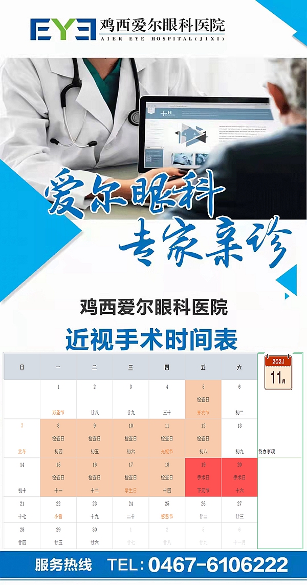 雞西愛爾眼科醫(yī)院近視手術(shù)時(shí)間表: