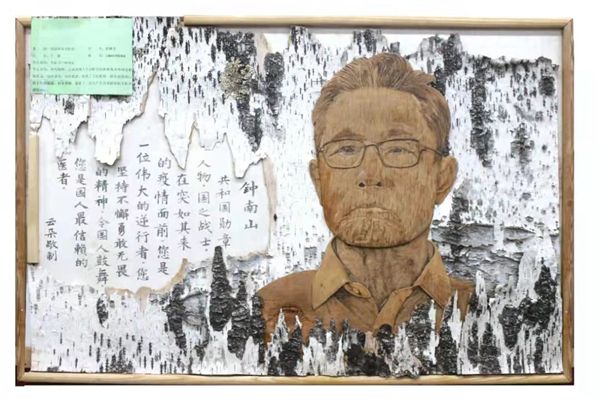 作品“生命衛(wèi)士鐘南山”采用大興安嶺原始森林優(yōu)質(zhì)樺樹皮粘貼而成,畫中鐘南山院士表情凝重,目光堅(jiān)毅,展現(xiàn)了一名共產(chǎn)黨員面對(duì)疫情無(wú)私奉獻(xiàn)的決心。作品“蘭閨雅集圖”,情致盎然、祥和靈動(dòng),給人以和諧、溫馨,讓人心生美好。