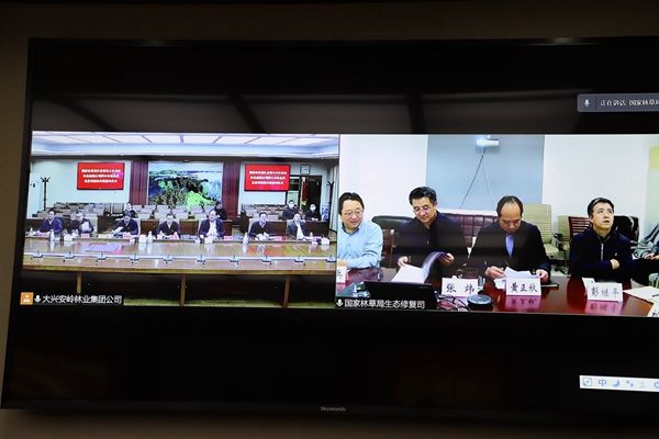 簽約儀式以視頻的形式召開。生態(tài)司司長(zhǎng)、司支部書記張煒,副司長(zhǎng)(正司局級(jí))、司支部副書記黃正秋,生態(tài)司二級(jí)巡視員、司支委組織委員潘兵,綜合處處長(zhǎng)、一級(jí)調(diào)研員彭繼平,森林城市處處長(zhǎng)、一級(jí)調(diào)研員、司支委紀(jì)檢委員楊春,生態(tài)處副處長(zhǎng)、三級(jí)調(diào)研員、司支委學(xué)習(xí)委員劉羿,在國(guó)家林草局主樓501房間,集團(tuán)公司黨委常委、副總經(jīng)理劉志,集團(tuán)公司生態(tài)修復(fù)管理處處長(zhǎng)劉繼明,集團(tuán)公司黨委老干部處(組織部副處長(zhǎng))范學(xué)利,阿木爾林業(yè)局黨委書記胡守慶,阿木爾林業(yè)局黨委副書記、局長(zhǎng)韓鳳泉,阿木爾林業(yè)局黨委副書記呂光鑫,阿木爾林業(yè)局黨委委員、組織部部長(zhǎng)王立昆在大興安嶺林業(yè)集團(tuán)公司視頻會(huì)議室,參加了會(huì)議。