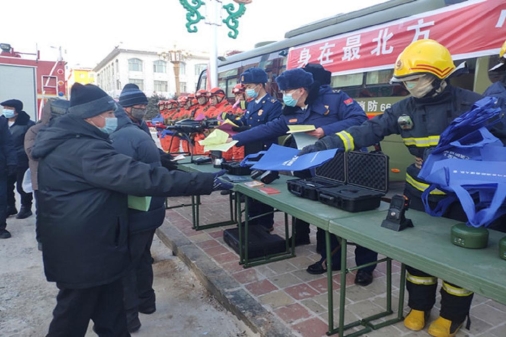 呼瑪縣消防救援大隊(duì)和呼瑪縣森林消防大隊(duì)在呼瑪縣人民廣場設(shè)立裝備講解區(qū)和體驗(yàn)區(qū),將常用的滅火設(shè)施和新配發(fā)的搶險(xiǎn)救援裝備進(jìn)行展示,將傳統(tǒng)的“遠(yuǎn)觀式”變?yōu)椤绑w驗(yàn)式”,吸引駐地群眾到場參觀。通過聯(lián)合宣傳,增加指戰(zhàn)員的榮譽(yù)感、責(zé)任感和使命感,增強(qiáng)了宣傳效果,更加展示了隊(duì)伍的良好形象。