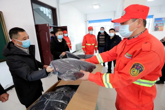 在森林消防大隊一樓活動室,司勇、張志良親切地與大隊干部職工交流談心,詳細了解森防隊員們的工作生活情況以及思想狀況,對他們“舍小家為大家”的敬業(yè)精神表示感謝,并逐一為隊員們分發(fā)了防寒羽絨服?!耙路笮『喜缓线m,穿在身上暖不暖和……”深切話語讓森防隊員們備感關(guān)懷,備受鼓舞,喜悅之情溢于言表。