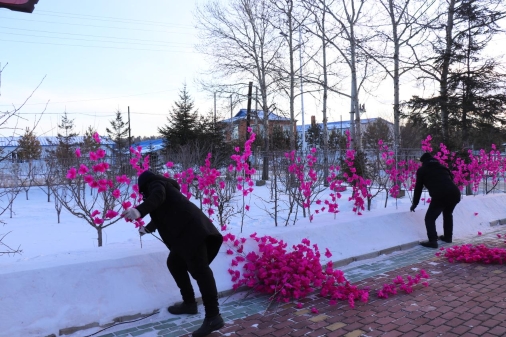 林場以“齊抓共管美環(huán)境、高高興興過大年”為定位,組織職工對辦公區(qū)域進(jìn)行了全方位大掃除,不放過清潔區(qū)的任何一個衛(wèi)生死角。通過換旗幟、砌雪墻、掛彩燈、制作了手工插花等多種形式,開展了環(huán)境美化亮化活動,給冬日的場區(qū)打造了一道靚麗的風(fēng)景線。