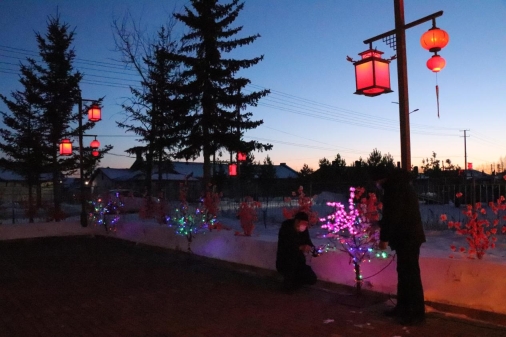 走進(jìn)依西肯林場辦事處,映入眼簾的是寬敞整潔的場院,充滿中國元素的復(fù)古紅燈籠,白色的雪墻襯托著粉色、紅色的手工插花,渾然一體,美輪美奐。當(dāng)夜幕降臨,五彩相間的霓虹流光溢彩,顯得格外奪目,交相輝映,燈光閃耀,年味十足,處處洋溢著喜慶的味道,更是將元旦、春節(jié)喜慶、祥和的氛圍渲染得淋漓盡致,讓人忍不住駐足觀賞。