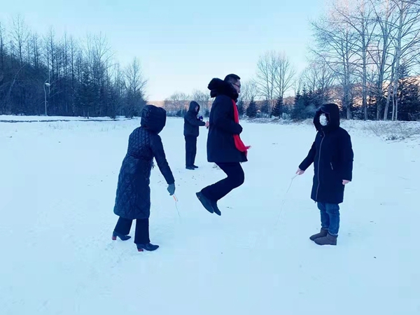 大家還在冰面上開(kāi)展踢毽子、跳繩等系列活動(dòng),雖然在冰面上增加了難度,大家卻絲毫不減熱情,許多精彩的瞬間被定格。
