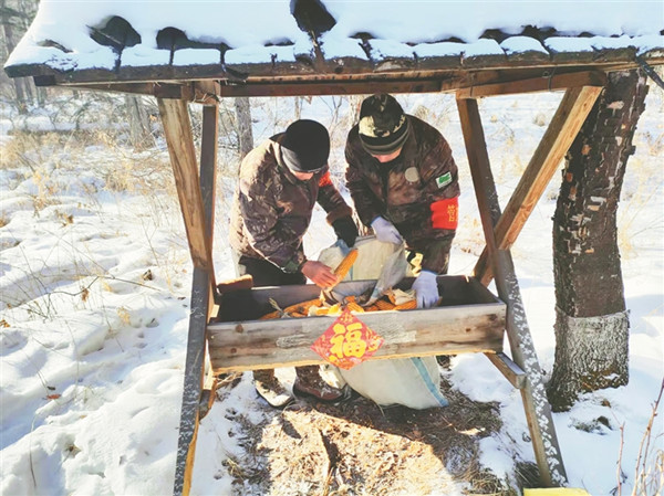 他們除夕進(jìn)山巡護(hù) 給野生動物送“年貨”
