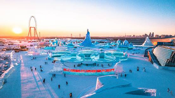 據(jù)了解,今年的哈爾濱冰雪大世界以“冬奧之光 閃耀世界”為主題,助力實現(xiàn)“帶動三億人參與冰雪運(yùn)動”的愿景。冰雪大世界通過打造冰雪童話王國傳遞冬奧精神,園區(qū)內(nèi)的主體景觀都蘊(yùn)含著冬奧元素。從入園口到主塔“圣火之巔”的軸線上,北京2022年冬奧會會徽、吉祥物以及奧運(yùn)五環(huán)等景觀有序排布,游客們不但可以賞冰樂雪,還能夠直觀感受到冬奧魅力。