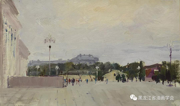 《都市中的廣場(chǎng)》 紙本油彩 22×37.5cm 1976年