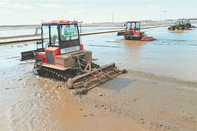 無人農機在水田整地作業(yè)。 馬文竹 王帥攝