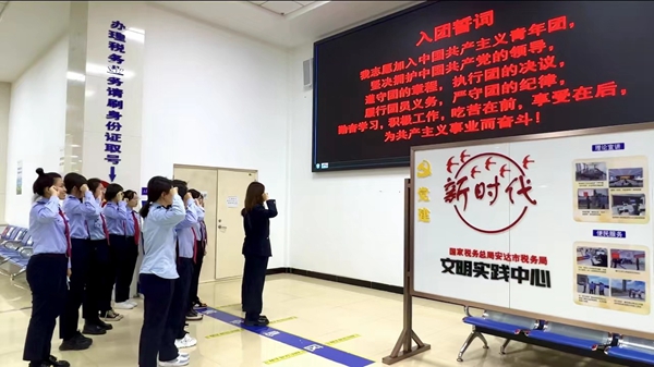 重溫入團(tuán)誓詞,匯聚青春力量。為進(jìn)一步引導(dǎo)廣大團(tuán)員青年厚植愛(ài)國(guó)、愛(ài)黨、愛(ài)稅收事業(yè)的深厚情感,進(jìn)一步增強(qiáng)團(tuán)支部的組織力量,安達(dá)市稅務(wù)局團(tuán)支部開(kāi)展重溫入團(tuán)誓詞活動(dòng),在莊嚴(yán)的團(tuán)歌聲中,11名安達(dá)市稅務(wù)局奮戰(zhàn)在稅收一線的團(tuán)員干部在團(tuán)支部書記的帶領(lǐng)下,面向誓詞莊嚴(yán)宣誓。宣誓完畢后,安達(dá)稅務(wù)青年紛紛表示,將立足本職、埋頭苦干,用一流的業(yè)務(wù)能力為納稅人繳費(fèi)人帶來(lái)一流的納稅服務(wù)體驗(yàn),為安達(dá)稅收事業(yè)奉獻(xiàn)青春力量。