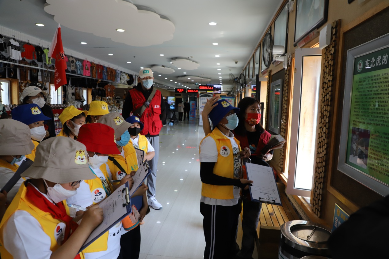 工作人員沿途講解著東北虎遷地保護的重要作用、東北虎科普知識、東北虎文化等,還一邊講解一邊跟小朋友們進行互動,大家踴躍舉起小手,搶著回答問題,爭先恐后展示自己學(xué)到的知識,答對的小朋友得到了東北虎林園工作人員獎勵的小禮物,臉上露出了快樂的笑容。