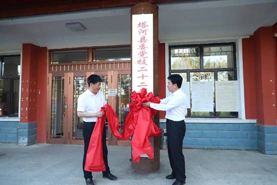 孫亮和許曉光共同為“塔河縣委黨校二十二站林場(chǎng)現(xiàn)場(chǎng)教學(xué)點(diǎn)”揭牌,標(biāo)志著塔河縣黨員干部教育工作邁上新臺(tái)階,也為地企雙方共同開(kāi)展黨員教育提供新路徑。