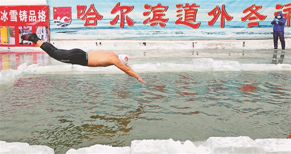 在松花江上冬泳,是延續(xù)著哈爾濱冬泳傳統(tǒng)的火種,展示著哈爾濱冰雪文化的魅力。本報(bào)記者 張澍攝