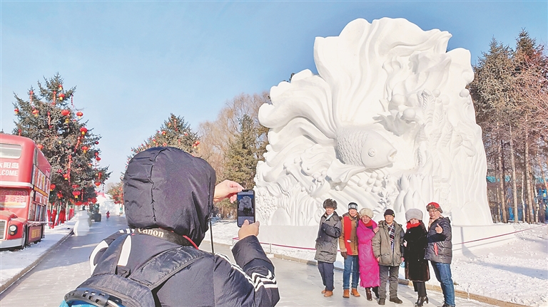本報(bào)訊(記者 蔣國紅)“這個魚雕得太好看了,快給我拍張照!”在第35屆中國·哈爾濱太陽島國際雪雕藝術(shù)博覽會現(xiàn)場,游人或乘坐電瓶車,或徒步欣賞著美麗的雪塑盛宴。