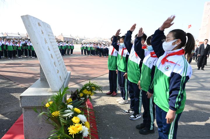 3月29日,不僅是“張慶云紀念展館”開館十周年,也是慶云希望小學捐建者——百歲老人張慶云逝世12周年的日子。儀式上,全體共同悼念老人,領導嘉賓及慶云希望小學學生代表向張慶云紀念碑敬獻鮮花,以示對慶云老人的感恩、敬重和懷念之情。隨后,團省委副書記張濤為張慶云(焦珊代領)頒發(fā)“龍江希望工程三十年公益之星”榮譽證書;為哈爾濱市阿城區(qū)雙豐慶云希望小學頒發(fā)“龍江希望工程三十年學校之星”榮譽證書。