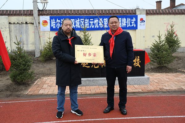 其父趙元忱,1959年加入中國共產(chǎn)黨,祖籍黑龍江省雙城農(nóng)豐鎮(zhèn)(原正白頭屯)。幼年因家貧失學(xué),解放后,在黨的關(guān)懷幫助下完成學(xué)業(yè)投身祖國建設(shè)。為銘記黨恩,回報(bào)家鄉(xiāng),委托其子捐建此所希望學(xué)校。