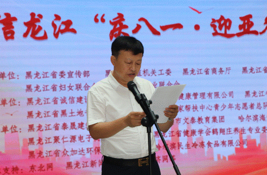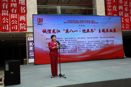 省直機關(guān)工委行業(yè)協(xié)會商會黨建工作部部長、全省性社會組織黨委專職副書記秦曉明致辭。他表示,相信通過這次活動的舉辦,將進一步激勵軍民同心,增強情感認同,深化同呼吸、共命運、心連心的軍民魚水情,營造擁軍優(yōu)屬、擁政愛民的濃厚社會氛圍。同時,以亞冬會為媒,以書畫展為平臺,充分展示文明尚禮、熱情自信的冰城風貌,領(lǐng)略龍江深厚的冰雪運動底蘊。