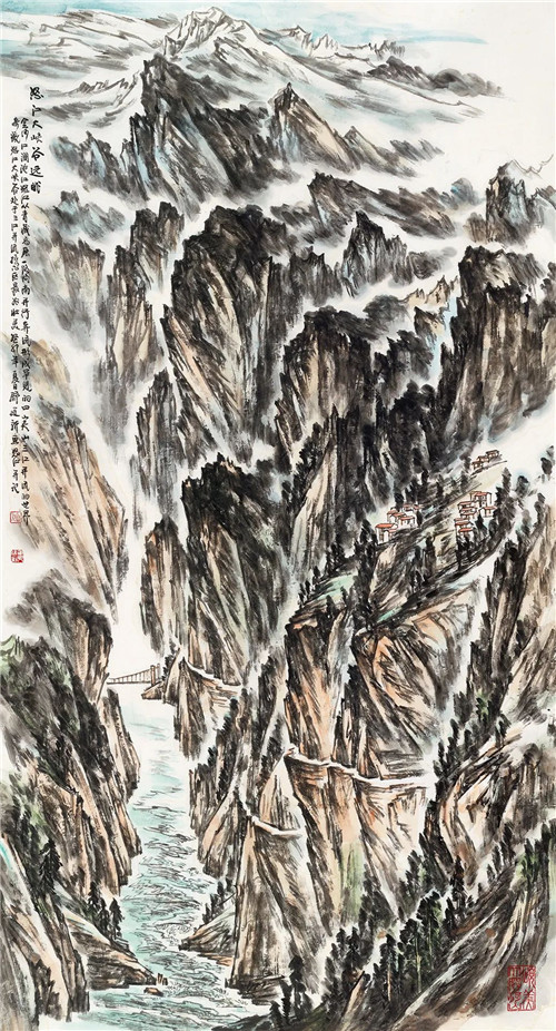 舒建新 怒江大峽谷遠眺 234cm×123cm 國畫