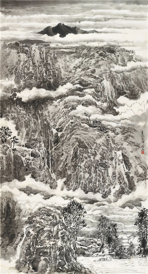 譚長德 衡山松云 231cm×192cm 國畫