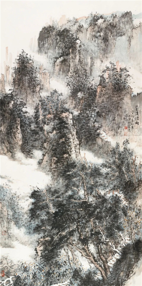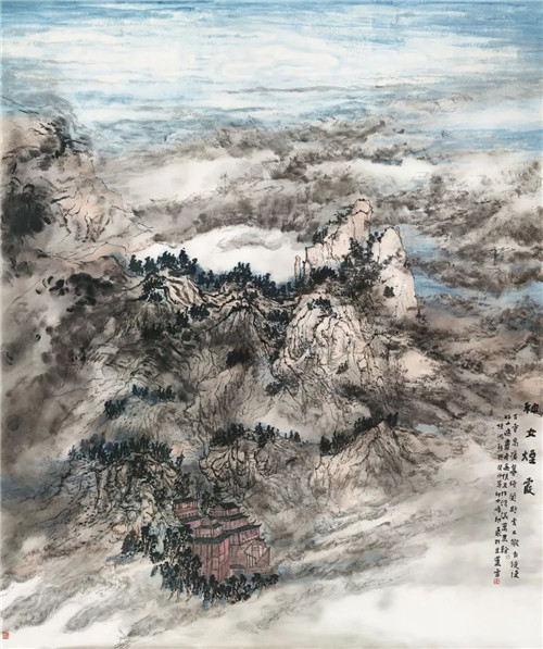 薛磊 青城嵐煙 234cm×123cm 國畫