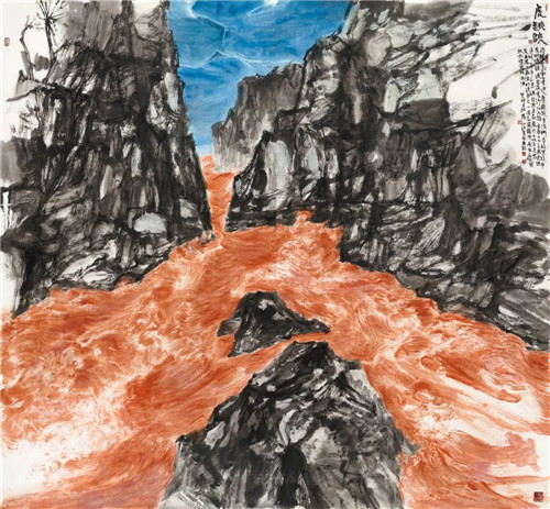 胡應康 虎跳峽 200cm×200cm 國畫