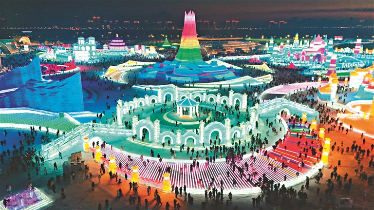 “震撼,刺激!”采訪過程中,不少游客這樣總結(jié)冰雪大世界之行。因為美景而感到震撼,乘坐521米超長大滑梯體驗到風(fēng)馳電掣的刺激……這個冰雪季,以“龍騰冰雪 逐夢亞冬”為主題的第二十五屆哈爾濱冰雪大世界為八方游客準(zhǔn)備了一場集沉浸體驗、旅游觀光、賞冰樂雪為一體的冰雪盛宴,這必定是一段令人難忘的冰雪旅程。