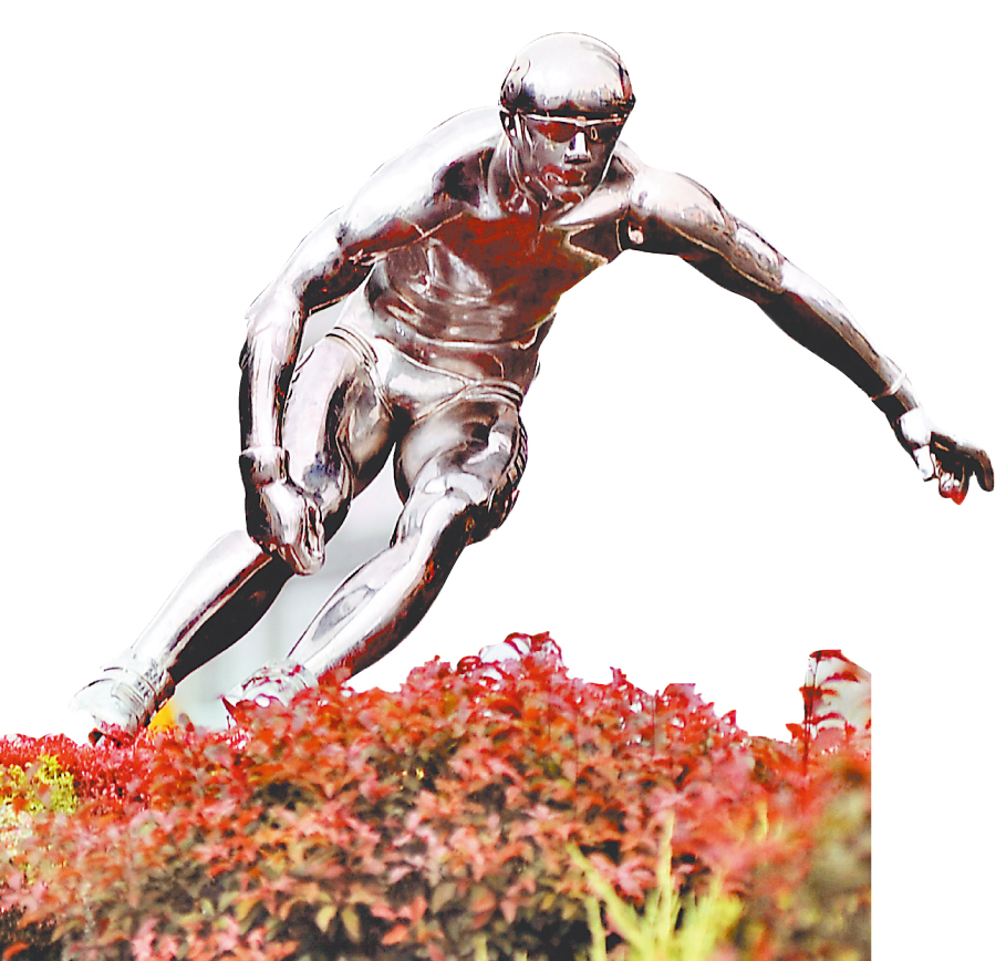 9日,在哈爾濱市南崗區(qū)紅軍街上,一處綠地里以亞冬會(huì)冰雪比賽項(xiàng)目為主題的雕塑群吸引了行人的目光。這些雕塑外觀銀色、制作精美、栩栩如生,展現(xiàn)了運(yùn)動(dòng)員奮力拼搏、勇往直前的精神風(fēng)貌。