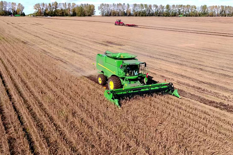 也正如老李說的,糧食豐產(chǎn)豐收,離不開農(nóng)業(yè)的科技支撐。在取得2023年全國農(nóng)墾提單產(chǎn)“大比武”優(yōu)勝農(nóng)場的基礎上,引龍河農(nóng)場有限公司黨委按照省委農(nóng)村工作會議、北大荒集團、北安分公司備春耕生產(chǎn)工作推進會議精神,以振興中國大豆產(chǎn)業(yè)為己任,落實落靠“穩(wěn)糧擴豆”任務,將大豆大面積單產(chǎn)提升作為農(nóng)業(yè)生產(chǎn)的主攻方向。2024年,這個農(nóng)場大豆一年“重茬”面積5.7萬畝,占大豆播種面積的18.23%;兩年“重茬”面積6.9萬畝,占大豆播種面積的21.91%;兩年以上“重茬”面積9.2萬畝,占大豆播種面積的29.22%。為更加有效應對大豆重茬,農(nóng)場通過應用重茬大豆提單產(chǎn)的各項措施,例如底肥增施生物有機肥和微生物菌肥,花期噴施大量元素水溶肥和微生物菌劑,大豆的產(chǎn)量有了非常明顯的提升,成熟度非常好,而且百粒重提高了1.5克,單數(shù)平均增加了1.9個莢數(shù)和3.48個粒數(shù)。與此同時,還以深松為重點,結(jié)合翻、耙、旋、起、壓等措施,提高整地質(zhì)量,打破板結(jié)層,增加土壤透氣性,奠定大豆播種基礎,為大豆萌發(fā)和根系生長創(chuàng)造良好的土壤條件,并選擇土壤有機質(zhì)含量高地塊種植“重茬”大豆。合理安排大豆播種順序,先播種正茬大豆,待溫度回暖后再播“重茬”大豆,避免低溫冷量“重茬”病害的疊加。