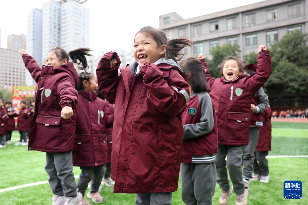 9月30日,甘肅省蘭州市東郊學校舉行全員趣味運動會,讓孩子們在運動中感受快樂,迎接國慶。新華社記者 陳斌 攝