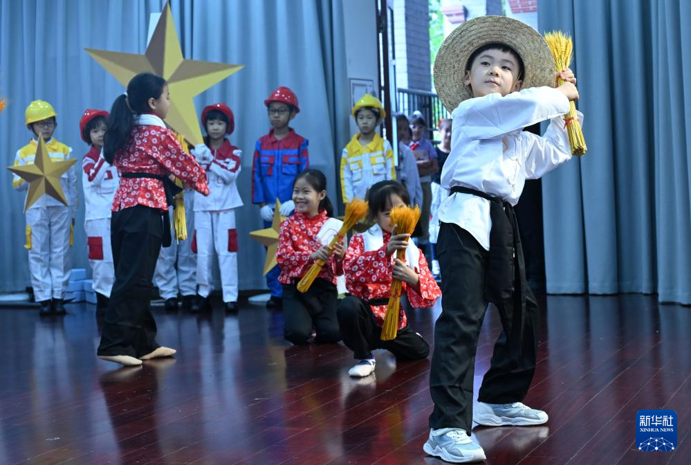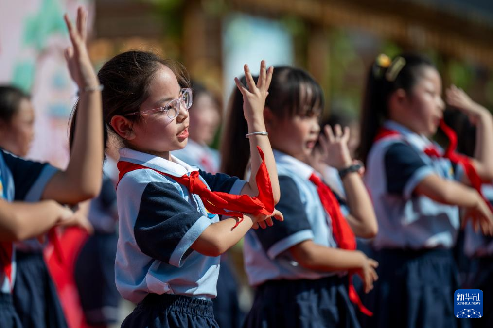 9月30日,湖北省黃石市沈家營小學的小朋友們在迎國慶活動上表演節(jié)目。新華社記者 伍志尊 攝