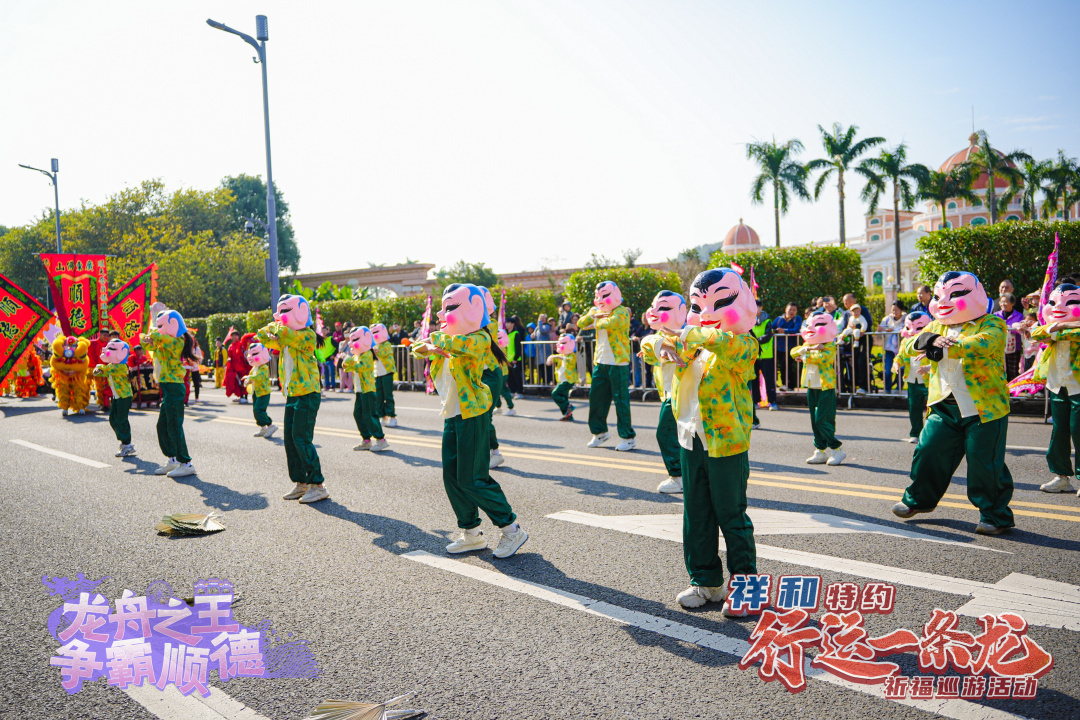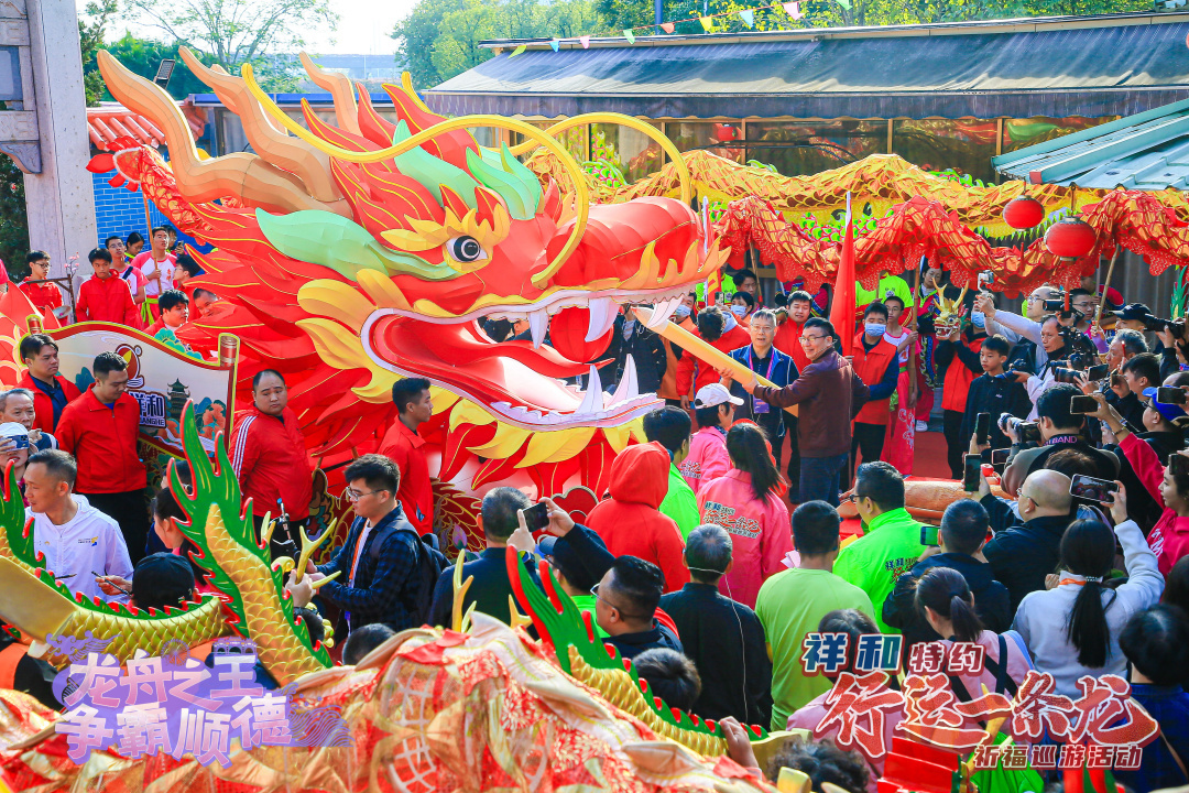 解鎖龍文化,體驗(yàn)新玩法;打造新民俗,巡游好歡樂?!靶羞\(yùn)一條龍”祈福巡游活動是順德全新打造的龍舟文化新民俗,現(xiàn)已成功舉辦兩屆。巡游以“拜龍母”“龍眼點(diǎn)睛”等民俗儀式為核心,凝練“行龍運(yùn),接龍?!钡脑⒁?,讓市民游客近距離感受民俗活動的獨(dú)特魅力。
