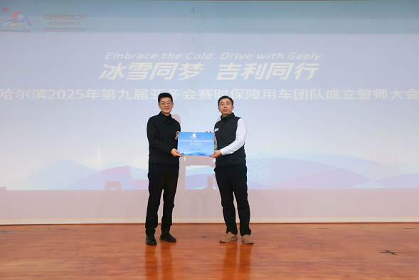在莊重而熱烈的氛圍中,現(xiàn)場隆重舉行了乘用車保障團(tuán)隊授旗儀式。駕駛員們整齊列隊,許下了鄭重的承諾:“精準(zhǔn)調(diào)度,安全駕駛,嚴(yán)格守時,真情服務(wù)。高效整備,細(xì)致維護(hù),保障有力,穩(wěn)健運行。全力實現(xiàn):零投訴、零延誤、零事故。用真情護(hù)航,用智慧開道,冰雪同夢,吉利同行?!?/p>