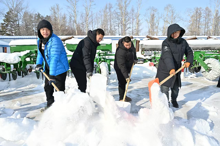 “眼下天氣逐漸回暖,為了避免氣溫上升造成積雪融化而形成冰層,影響后續(xù)工作,我們采取鏟車清雪、人工清邊的措施,確保將農(nóng)具場積雪徹底清理干凈,為農(nóng)機具檢修提供良好環(huán)境?!惫芾韰^(qū)工作人員說。