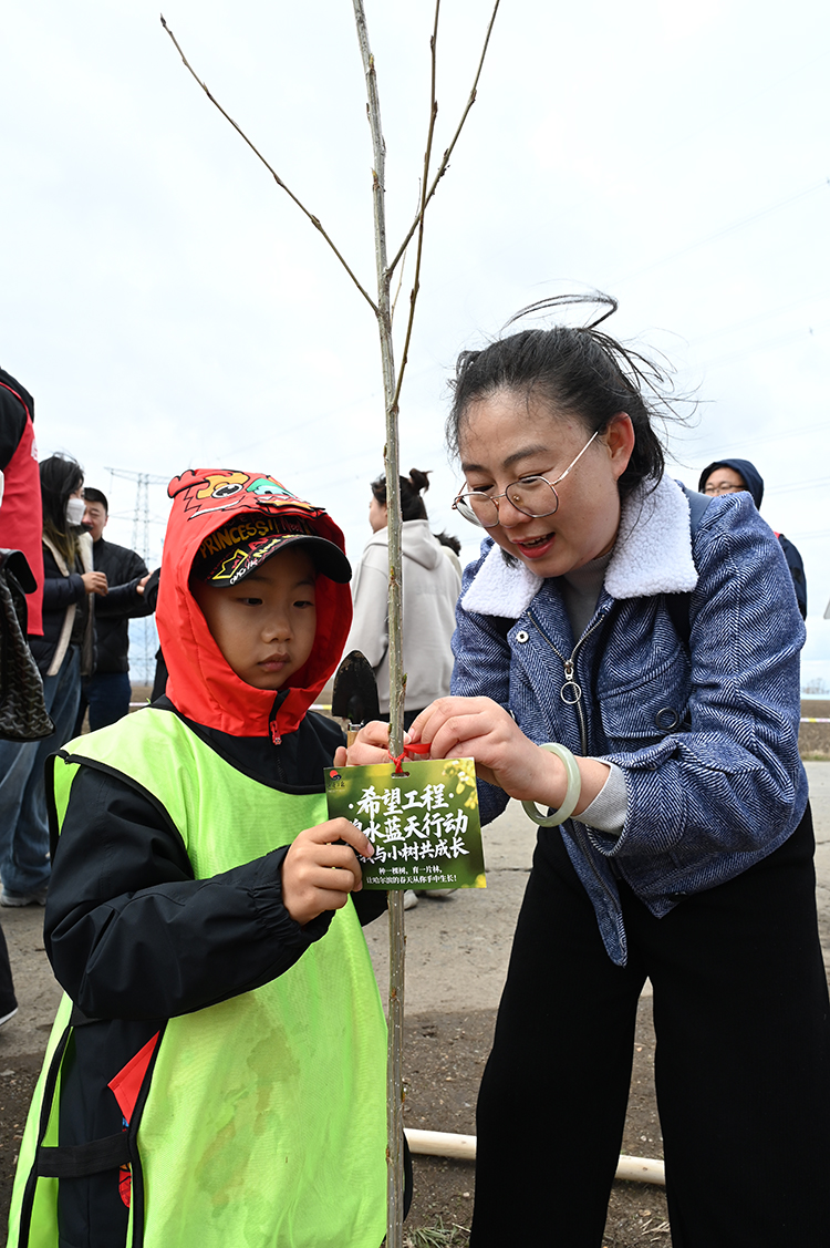 當(dāng)日上午,義務(wù)植樹(shù)隊(duì)伍集合出發(fā),分組領(lǐng)取工具并開(kāi)展植樹(shù)技術(shù)交底?;顒?dòng)現(xiàn)場(chǎng),大家分工協(xié)作,揮鍬培土、扶苗澆水,共栽種樹(shù)苗100余株。每棵新植樹(shù)苗均懸掛“寄語(yǔ)卡片”,青少年們用文字和繪畫表達(dá)對(duì)未來(lái)的祝福,童心港灣學(xué)生代表以“‘我與小樹(shù)共成長(zhǎng)’ 愛(ài)綠護(hù)綠環(huán)保行”為主題,將生態(tài)環(huán)保與愛(ài)黨愛(ài)國(guó)情懷深度融合。隨后,舉行“希望林”揭牌儀式,象征著又一片綠色希望落地扎根。